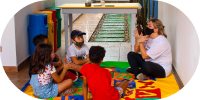 A aula de inglês é ministrada pela professora Ana a partir do maternal I e está inclusa na mensalidade.